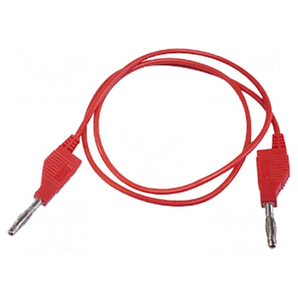 Konstrukcja złączy obejmuje dodatkowe gniazda osiowe 4 mm, co umożliwia łączenie szeregowe. Izolacja przewodu wykonana jest z tworzywa PVC, a całość dostępna jest w kolorze czerwonym.