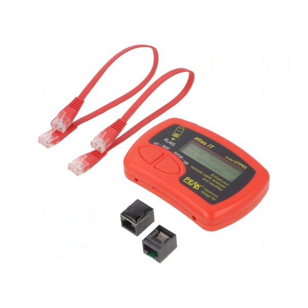 Tester okablowania LAN VELLEMAN UTP05 umożliwia weryfikację poprawności połączeń przewodów RJ45. Urządzenie identyfikuje konfigurację kabli, wykrywając zwarcia, przerwy w obwodzie oraz zamienione przewody. Maksymalna długość testowanego przewodu wynosi 150 metrów, przy napięciu testowym 5V oraz prądzie 2,5mA.