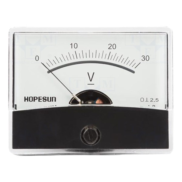 Woltomierz analogowy VELLEMAN AVM6030 przeznaczony jest do pomiaru napięcia stałego w zakresie od 0 do 30V. Urządzenie charakteryzuje się klasą dokładności wynoszącą 2,5, co pozwala na bieżące monitorowanie wartości napięcia w układach elektrycznych.