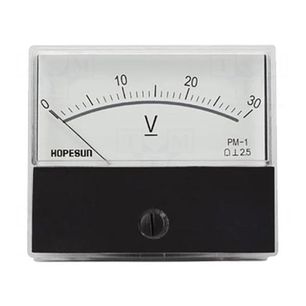 Woltomierz analogowy przeznaczony do montażu panelowego służy do bieżącego monitorowania napięcia stałego. Urządzenie oferuje zakres pomiarowy od 0 do 30V DC, co pozwala na zastosowanie go w układach zasilania oraz instalacjach kontrolnych.