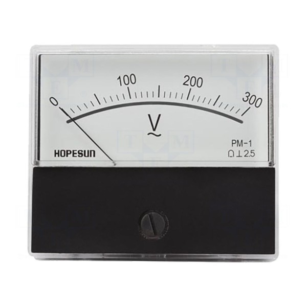 Woltomierz analogowy przeznaczony do montażu panelowego służy do stałego monitorowania wartości napięcia przemiennego. Urządzenie pozwala na odczyt parametrów w zakresie od 0 do 300V AC.