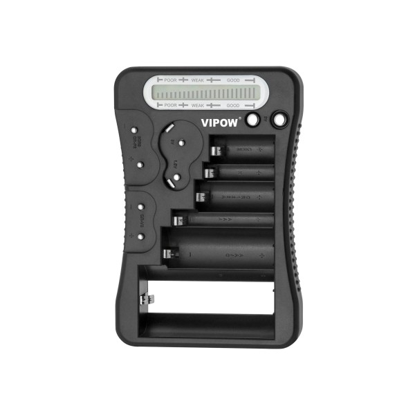 Urządzenie obsługuje szeroki zakres ogniw, w tym CR2, N, CR123A, AAA, AA/C, D, 6F22 oraz baterie guzikowe.
