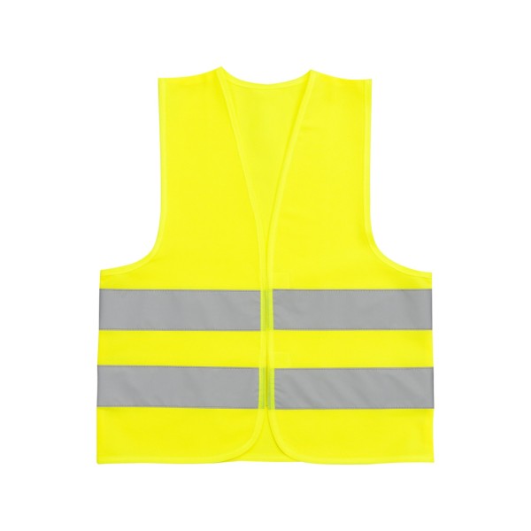 Materiał 100% poliester, gramatura 127 g/m2, dwie poziome taśmy odblaskowe.