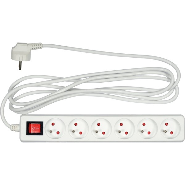 PRZEDŁUŻACZ ELEKTRYCZNY, BIAŁY, 6 GNIAZD Z UZIEMIENIEM, 3M Z WYŁĄCZNIKIEM 72531