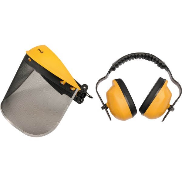 siatkowa osłona twarzy, nauszniki przeciwhałasowe