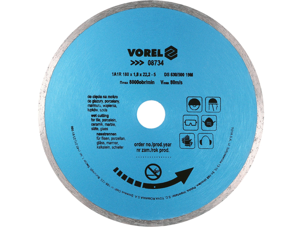 Tarcza diamentowa Vorel 180 mm, segment ciągły