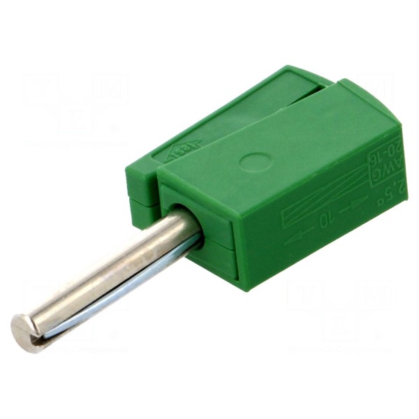 Złącze bananowe 4mm, wtyk 20A / 42V, zielony