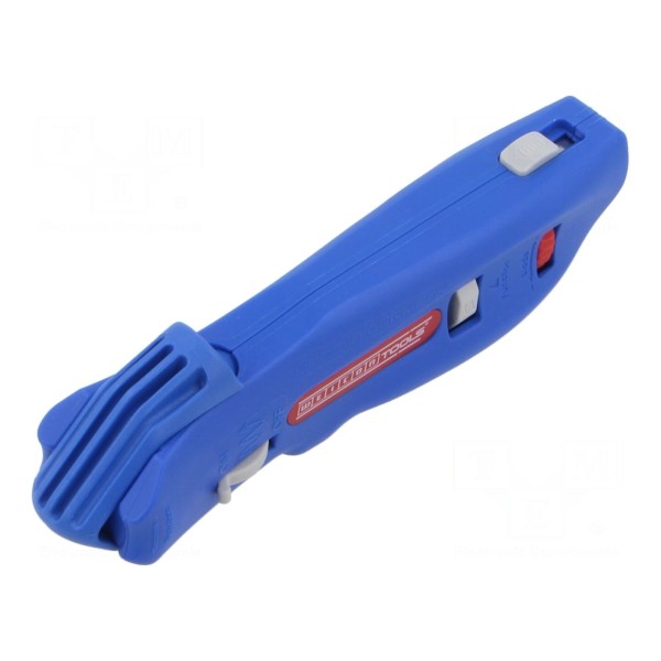 Nóż przeznaczony dla elektryków służy do precyzyjnego ściągania izolacji z przewodów o średnicy w zakresie od 4 mm do 28 mm. Konstrukcja narzędzia umożliwia sprawne usuwanie izolacji z kabli o różnych przekrojach, co jest niezbędne przy wykonywaniu prac instalacyjnych.