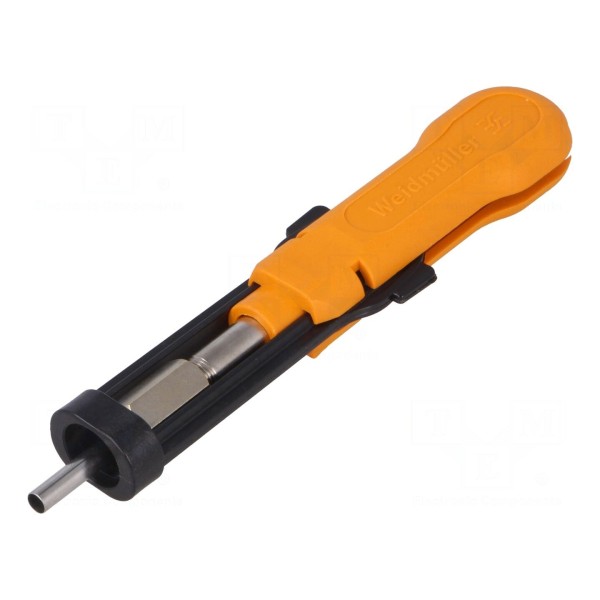 Dzięki specjalistycznej budowie przyrząd umożliwia sprawne usuwanie komponentów z bloków złączy bez ryzyka uszkodzenia mechanicznego gniazd lub styków. Produkt stanowi wyposażenie uzupełniające dla instalatorów pracujących z systemami złączy wielobiegunowych marki Weidmüller.