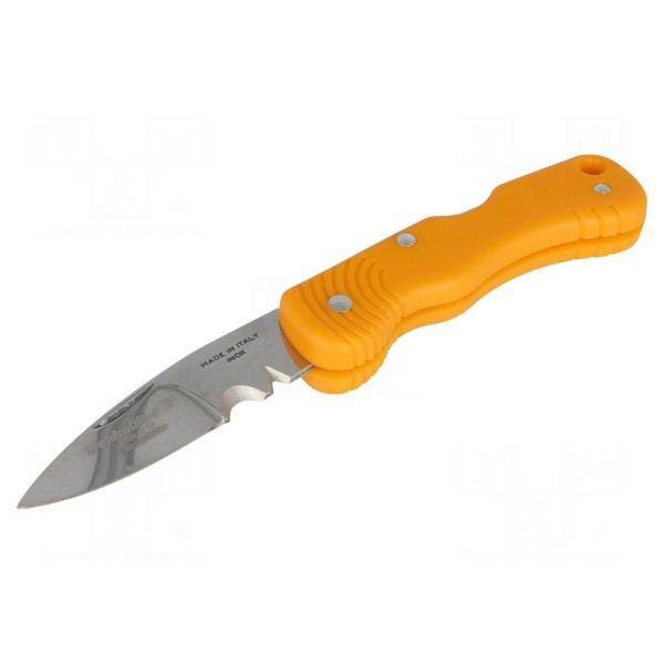 Nóż monterski to narzędzie zaprojektowane dla elektryków, charakteryzujące się całkowitą długością wynoszącą 190mm. Konstrukcja urządzenia obejmuje ostrze o długości 80mm, które pozwala na precyzyjne wykonywanie prac w instalacjach elektrycznych.