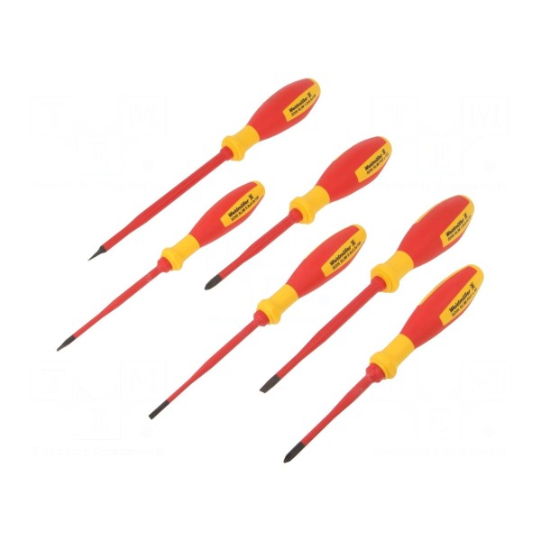 Zestaw zawiera sześć izolowanych wkrętaków o zredukowanej średnicy trzpienia, przeznaczonych do pracy pod napięciem do 1kV AC. Narzędzia są zgodne z normą VDE, co zapewnia bezpieczeństwo podczas wykonywania prac przy instalacjach elektrycznych. W skład kompletu wchodzą groty typu Phillips oraz płaskie, zapewniające wszechstronność w różnych zadaniach montażowych.