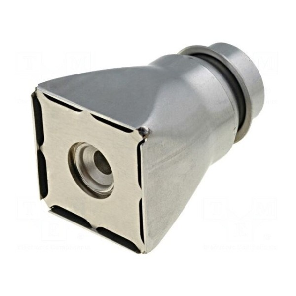 Dysza gorącego powietrza o wymiarach 31,3x31,3 mm jest elementem wymiennym przeznaczonym do użytku ze stacjami lutowniczymi. Konstrukcja elementu umożliwia precyzyjne kierowanie strumienia ciepłego powietrza w procesach lutowniczych.
