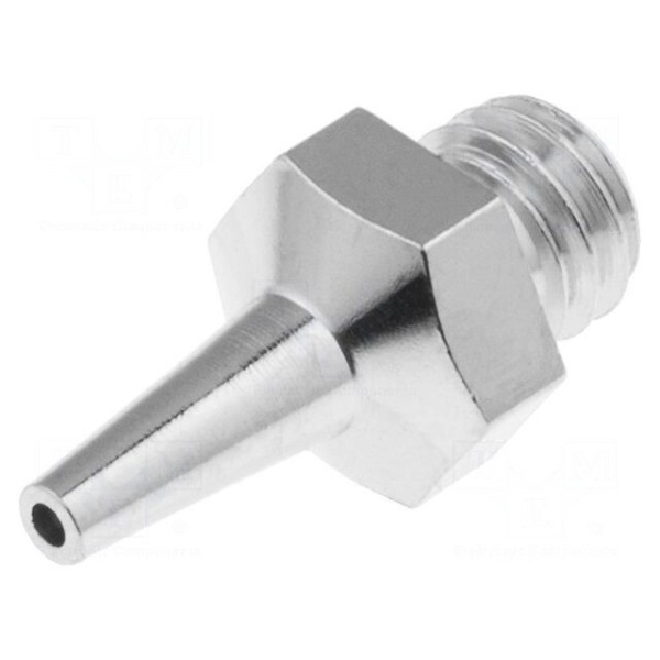 Dysza typu gorące powietrze przeznaczona jest do wykorzystania z kolbami gorącego powietrza marki Weller. Element posiada otwór o średnicy 1,2mm, co umożliwia precyzyjne kierowanie strumienia powietrza na obszar lutowania.
