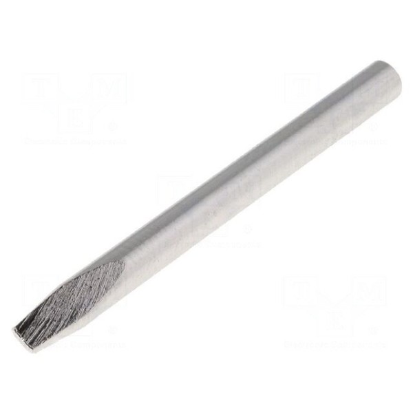 Grot przeznaczony do lutownic grzałkowych charakteryzuje się kształtem wkrętaka o szerokości końcówki wynoszącej 2 mm. Element ten został zaprojektowany do współpracy ze stacjami lutowniczymi, zapewniając odpowiednie przewodnictwo cieplne podczas prac montażowych.