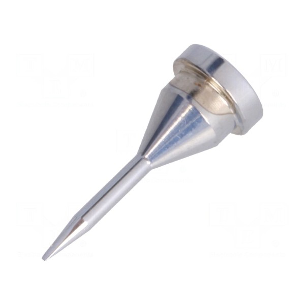 Grot przeznaczony do lutownic grzałkowych charakteryzuje się kształtem stożka oraz wymiarami końcówki wynoszącymi 0,1mm. Element ten umożliwia precyzyjne operacje lutownicze wymagające niewielkiego punktu styku.