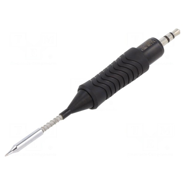 Grot lutowniczy typu z grzałką został zaprojektowany do współpracy z urządzeniami lutowniczymi o mocy 40W. Element charakteryzuje się kształtem stożka wydłużonego o średnicy końcówki 0,2mm, co umożliwia precyzyjną pracę w miejscach o ograniczonej przestrzeni.