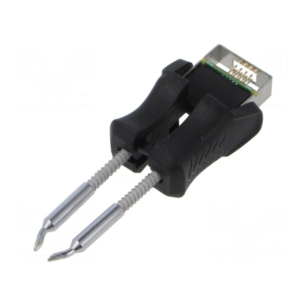 Grot przeznaczony do pracy z gorącymi mikroszczypcami charakteryzuje się kształtem typu kopytko o ściętej końcówce. Wymiar roboczy elementu wynosi 1,5mm, co umożliwia precyzyjne operowanie w układach elektronicznych.