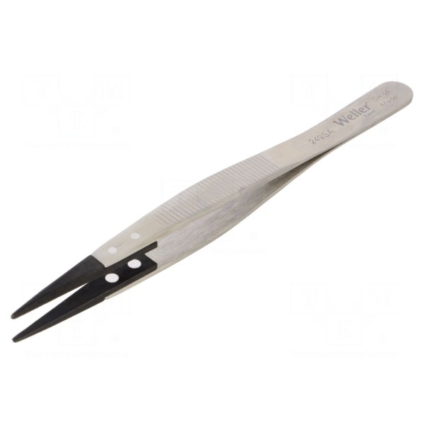 Pęseta marki Weller o długości 130 mm została zaprojektowana do wykonywania zadań wymagających wysokiej precyzji. Narzędzie posiada prosty profil oraz ostrą końcówkę, co ułatwia manipulowanie małymi elementami w układach elektronicznych i mechanicznych.
