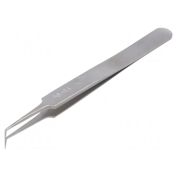 Pęseta o długości 115 mm została zaprojektowana do prac wymagających wysokiej precyzji. Narzędzie posiada wąskie, zagięte ostrza o ostrym zakończeniu, co ułatwia operowanie drobnymi elementami w ograniczonej przestrzeni.
