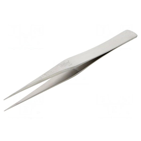 Pęseta prosta o długości 125 mm została wykonana ze stali nierdzewnej. Narzędzie charakteryzuje się precyzyjnym wykonaniem oraz ostrym kształtem końcówki ostrza.