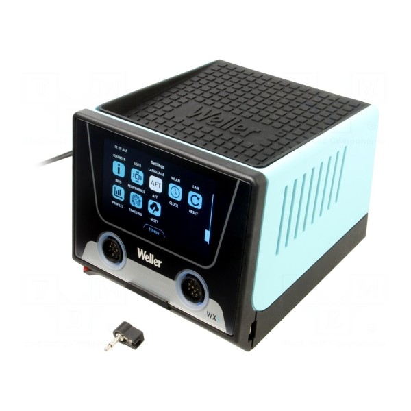 Stacja lutownicza bazowa Weller WXSMART charakteryzuje się mocą wyjściową 300W i obsługuje dwukanałową regulację temperatury w zakresie od 100°C do 450°C. Urządzenie oferuje stabilność temperaturową na poziomie ±2°C oraz dokładność temperatury wynoszącą ±9°C. Obsługa odbywa się za pośrednictwem cyfrowego panelu dotykowego zintegrowanego z wyświetlaczem LCD TFT.
