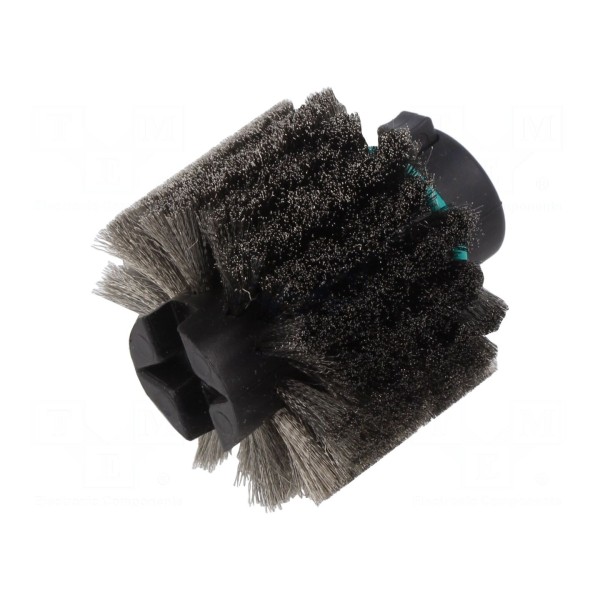 Szczotka przeznaczona jest do wykorzystania w urządzeniach lutowniczych, pełniąc funkcję wymiennej części zamiennej do czyścika. Produkt posiada włosie wykonane z metalu, co zapewnia odpowiednią trwałość podczas czyszczenia grotów lutowniczych.