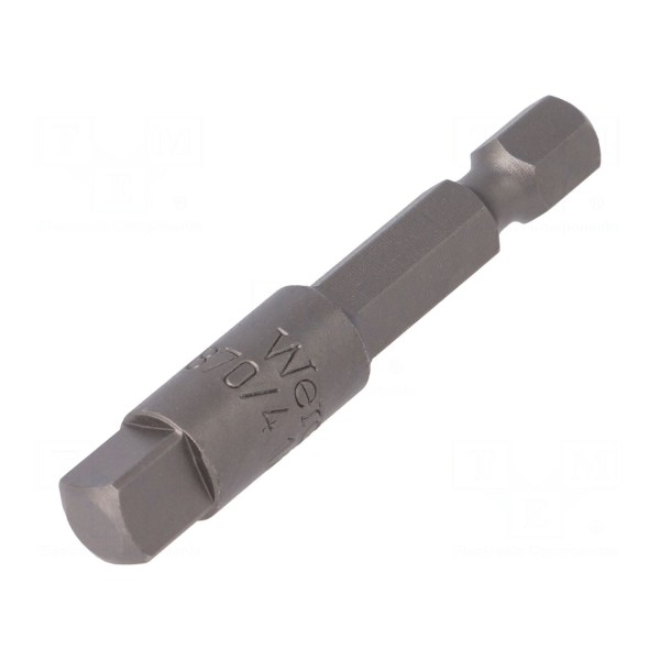 Adapter narzędziowy przeznaczony do połączeń w układach napędowych 1/4". Element posiada gniazdo w standardzie D6,3mm o przekroju kwadratowym oraz uchwyt o profilu sześciokątnym.