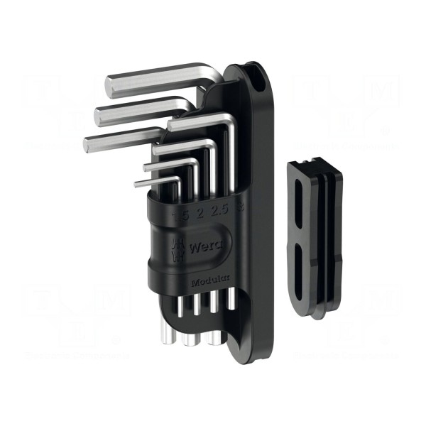 Zestaw kluczy imbusowych WERA Tool-Check Modular Hex-Plus 1 składa się z siedmiu elementów o profilu Hex-Plus. W skład kompletu wchodzą klucze o rozmiarach HEX 1,5mm, HEX 2mm, HEX 2,5mm, HEX 3mm, HEX 4mm, HEX 5mm oraz HEX 6mm.