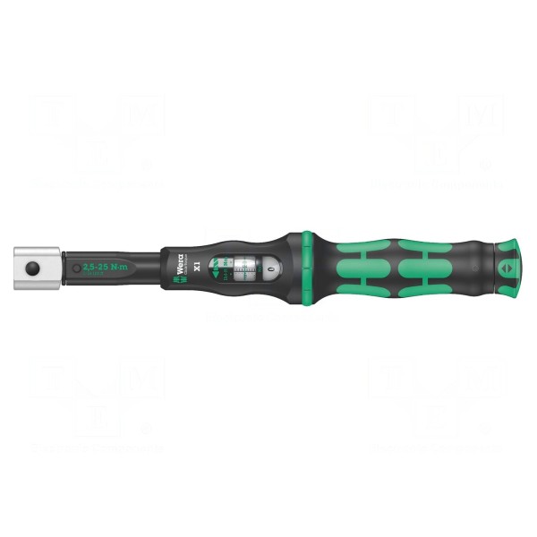 Klucz dynamometryczny Click-Torque X 1 przeznaczony jest do kontrolowanego dokręcania elementów z momentem obrotowym w zakresie od 2,5 do 25Nm. Narzędzie wyposażone jest w gniazdo uchwytu o wymiarach 9x12mm, co umożliwia wymianę końcówek roboczych. Całkowita długość klucza wynosi 283mm.
