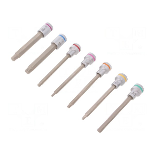 Zestaw 7 kluczy nasadowych imbusowych 3/8" ze stali chromowo-wanadowej