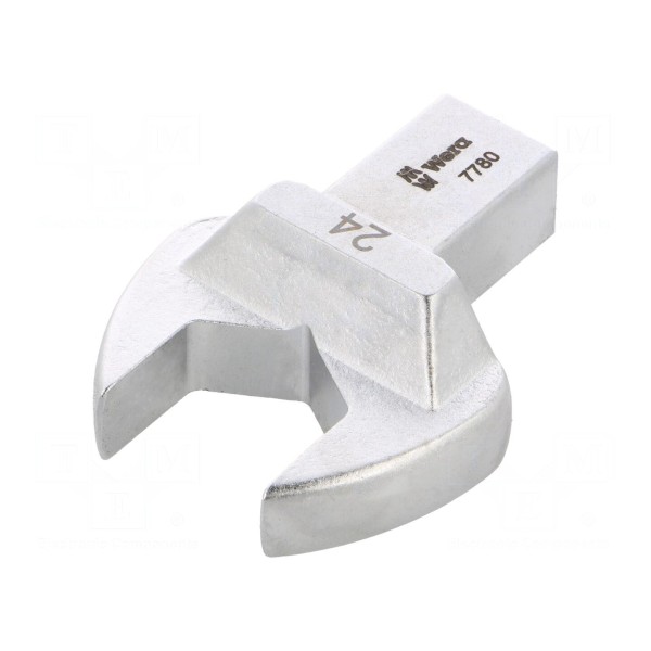 Końcówka klucza płaskiego wtykowego przeznaczona jest do współpracy z kluczami dynamometrycznymi. Element charakteryzuje się rozmiarem roboczym 24 mm oraz gniazdem uchwytu o wymiarach 14x18 mm.