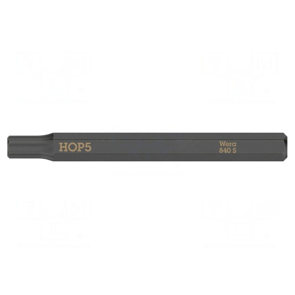 Końcówka wkrętakowa typu Hex-Plus posiada grot o rozmiarze HEX 5mm. Produkt został zaprojektowany do współpracy z wkrętakiem udarowym Wera 921.