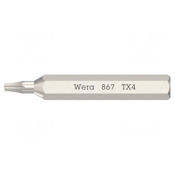 Końcówka wkrętakowa 867/0 Micro przeznaczona jest do pracy z gniazdami typu Torx o rozmiarze TX3. Element charakteryzuje się całkowitą długością wynoszącą 30 mm.