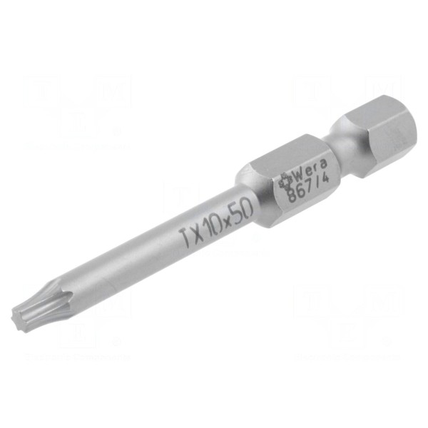Końcówka wkrętakowa WERA 867/4/10 to element przeznaczony do pracy z gniazdami typu Torx o rozmiarze TX10. Narzędzie zostało wyposażone w grot o profilu Torx, co umożliwia precyzyjne dopasowanie do śrub z odpowiednim wgłębieniem.