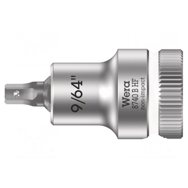 Nasadka o długości 35 mm przeznaczona jest do pracy z połączeniami śrubowymi typu imbus Hex-Plus o rozmiarze 9/64". Narzędzie wyposażone jest w gniazdo o wymiarze 3/8", co pozwala na współpracę z odpowiednimi pokrętłami i grzechotkami.
