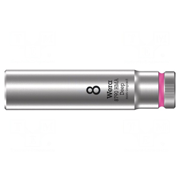 Nasadka sześciokątna typu nasadowego o rozmiarze 8mm przeznaczona jest do współpracy z uchwytami o rozmiarze 1/4". Element charakteryzuje się długością wynoszącą 50mm, co umożliwia pracę w miejscach o utrudnionym dostępie.