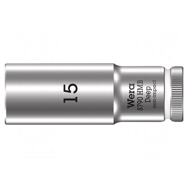Nasadka sześciokątna typu 8790 HMB Deep o rozmiarze 15mm przeznaczona jest do pracy z kluczami o gnieździe 3/8". Narzędzie zostało wykonane ze stali chromowo-wanadowej, co zapewnia jego trwałość w warunkach warsztatowych.