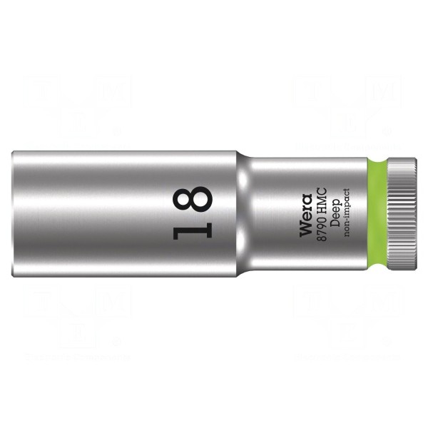 Nasadka 6-kątna typu nasadowego o rozmiarze gniazda 18 mm. Element przeznaczony do współpracy z uchwytami o rozmiarze 1/2". Całkowita długość narzędzia wynosi 83 mm.