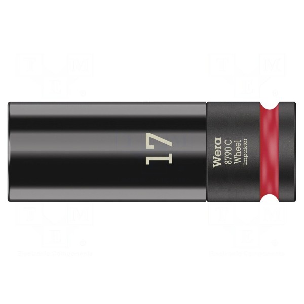 Nasadka udarowa typu nasadowego o profilu 6-kątnym przeznaczona jest do pracy z połączeniami śrubowymi. Element posiada rozmiar gniazda roboczego 17 mm oraz mocowanie typu 1/2".
