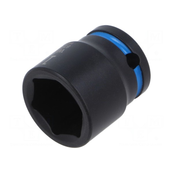 Nasadka udarowa 6-kątna przeznaczona jest do pracy z narzędziami o rozmiarze gniazda 3/8". Element wykonany został w standardzie HEX 19mm, co umożliwia współpracę z kompatybilnymi śrubami i nakrętkami.