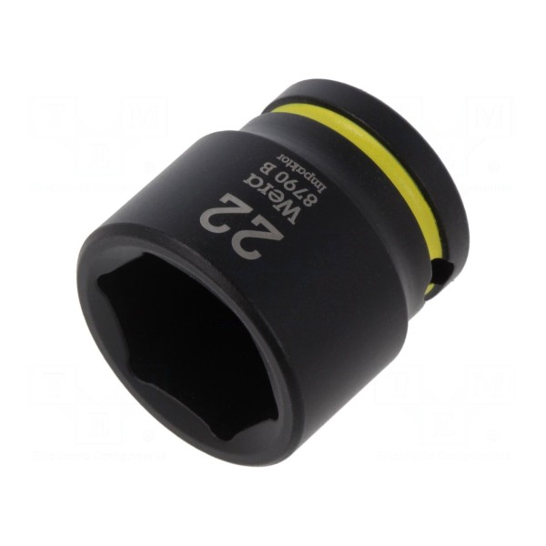 Element charakteryzuje się rozmiarem gniazda HEX 22mm oraz długością całkowitą wynoszącą 32mm. Zastosowany w nasadce kod kolorystyczny pozwala na szybkie rozpoznanie rozmiaru narzędzia podczas pracy.