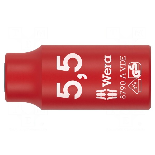Nasadka sześciokątna WERA 8790 A VDE Zyklop to narzędzie przeznaczone do pracy pod napięciem do 1kV AC. Element posiada rozmiar gniazda HEX 5,5 mm oraz mocowanie typu 1/4".