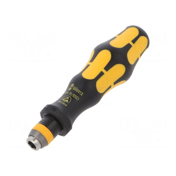 Rękojeść wkrętakowa WERA 05051464001 to narzędzie wyposażone w uchwyt szybkomocujący o rozmiarze 1/4". Produkt przystosowany jest do pracy w środowiskach wymagających ochrony przed wyładowaniami elektrostatycznymi dzięki właściwościom ESD.