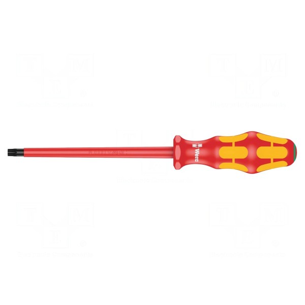 Wkrętak izolowany przeznaczony do prac pod napięciem do 1kV AC. Narzędzie wyposażone jest w grot typu Torx w rozmiarze TX40, wykonany ze stali. Długość części roboczej wynosi 150mm, natomiast całkowita długość narzędzia to 262mm.