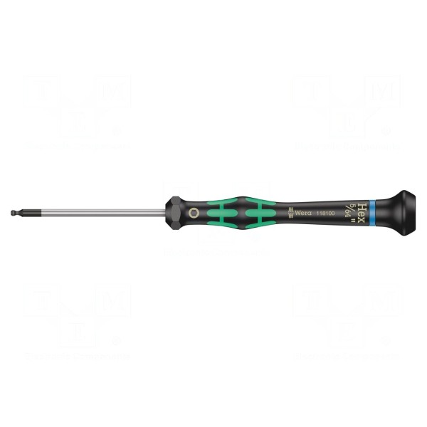 Wkrętak precyzyjny wyposażony w grot typu imbus z końcówką kulistą o rozmiarze HEX 5/64". Długość robocza ostrza wynosi 60mm, co pozwala na operowanie w miejscach o ograniczonej przestrzeni.