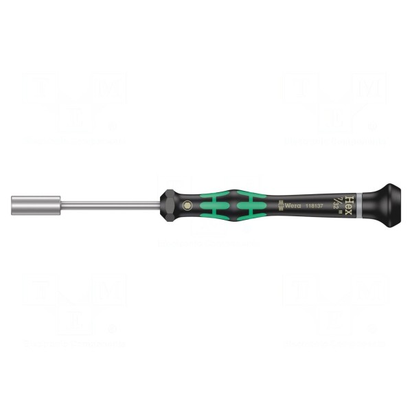 Wkrętak precyzyjny WERA z nasadką 6-kątną o rozmiarze gniazda 7/32". Element wyposażony jest w ostrze o długości 60 mm, a jego całkowita długość wynosi 157 mm.