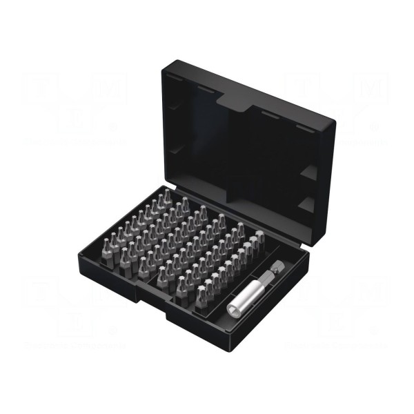 Komplet dostarczany jest w plastikowym pudełku ułatwiającym organizację i przechowywanie. W zestawie: adapter, końcówki wkrętakowe.