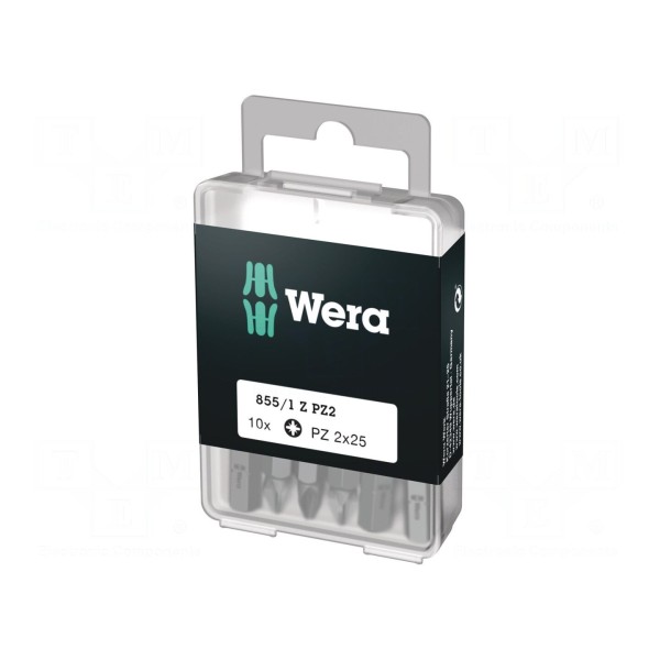 Zestaw 10 końcówek wkrętakowych Pozidriv PZ2 w plastikowym pudełku