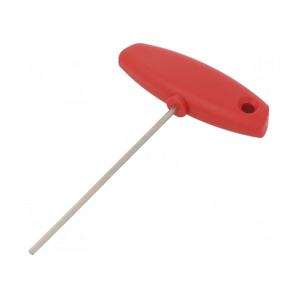 Klucz imbusowy z końcówką typu HEX 2,5mm został wykonany ze stali chromowo-wanadowej. Narzędzie posiada rękojeść typu T, która umożliwia efektywne przenoszenie momentu obrotowego podczas pracy.