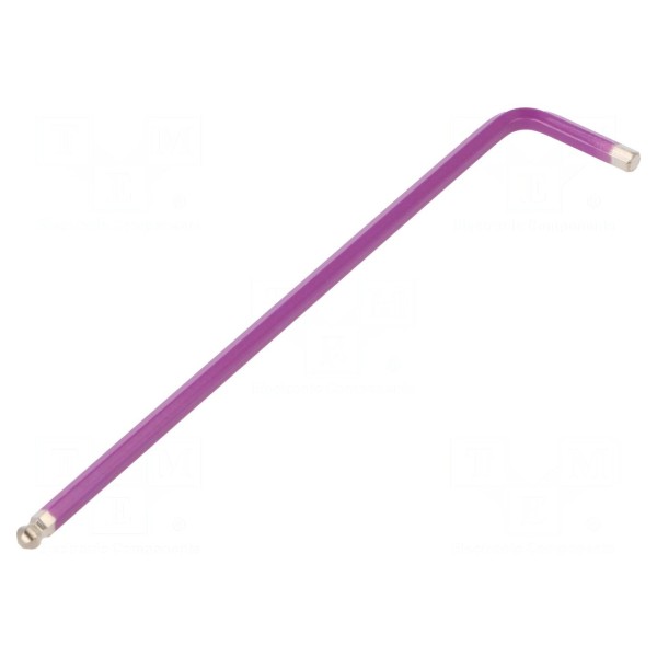 Klucz imbusowy kulisty HEX 4mm, długość 142mmKlucz imbusowy typu HEX o rozmiarze 4mm przeznaczony jest do prac montażowych oraz serwisowych. Narzędzie posiada końcówkę kulistą, która ułatwia pracę w miejscach o ograniczonej przestrzeni, umożliwiając operowanie kluczem pod kątem. Całkowita długość narzędzia wynosi 142mm. Wykonanie konstrukcji zapewnia dopasowanie do standardowych śrub z gniazdem sześciokątnym o podanym rozmiarze.
